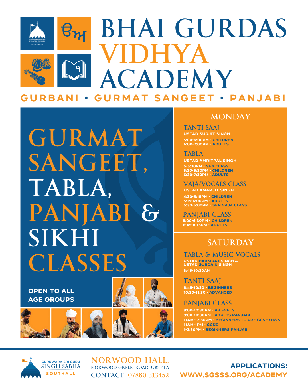 Develop your vocal abilities and learn to play the Vaja (harmonium), while singing shabads and kirtan in the traditional Sikh style.